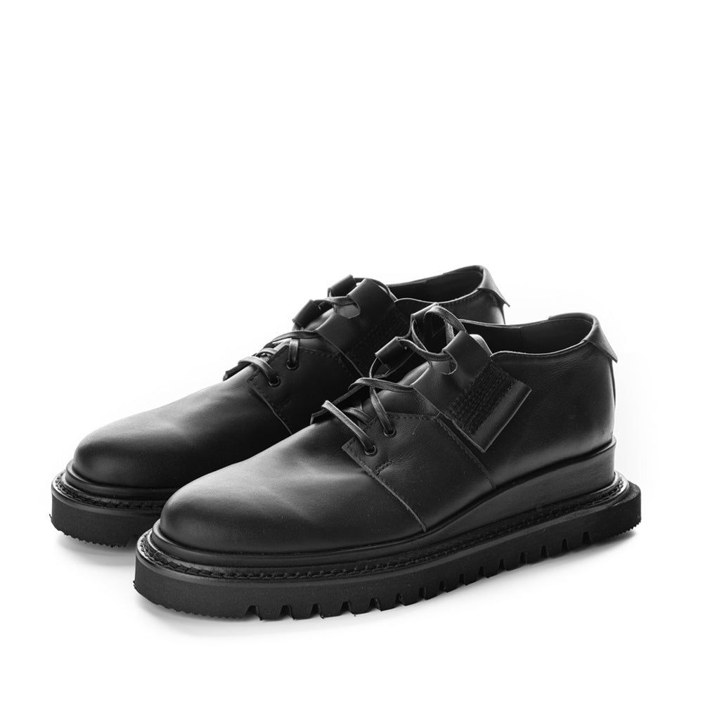 The Love Goes On black leather men's shoes by Mihaela Glavan combine classic style with modern design elements. These black leather lace-up shoes feature distinctive cut-out details and metallic accessories, adding a unique and sophisticated touch. The natural leather lining ensures a comfortable fit, while the black leather-covered mid-sole and black geometric sole provide a sleek contemporary finish.