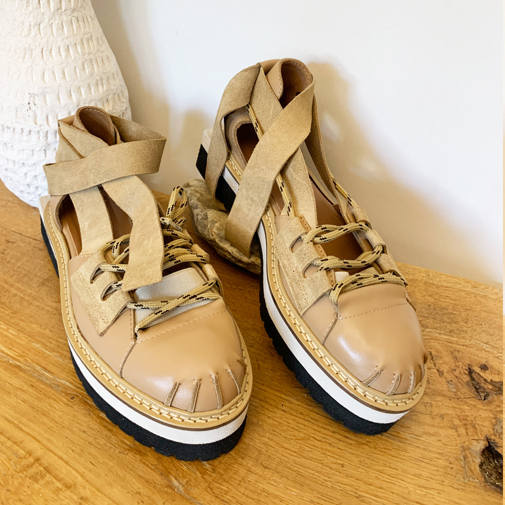 Sustainable Selection- Outline black leather flat platform shoes