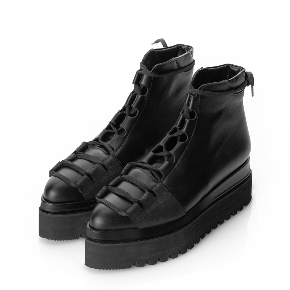 Sole: high sole with a black plateau for style and stability.