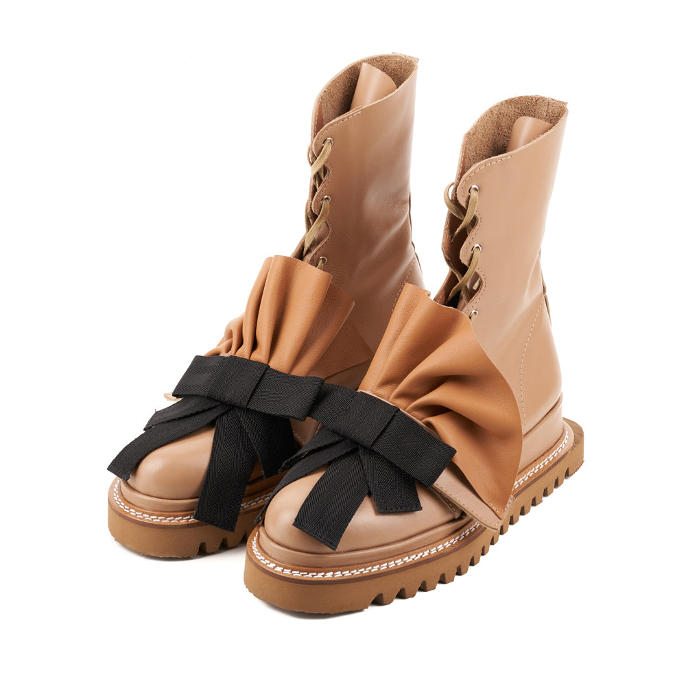 These booties can easily transition from day to night, adding a playful flair to both casual and more formal outfits. The neutral color palette and unique details make them versatile and statement-making.