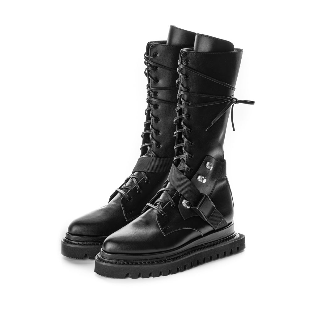 The Easy Stretch long black boots by Mihaela Glavan are the statement of style fused with comfort, designed for those who appreciate a sleek, streamlined look with the flexibility to accommodate various calf sizes. Made from high-quality black leather, these boots feature ecological stretch leather that allows for a more adaptable and comfortable fit, hugging the legs without constricting. The leather interior ensures durability and comfort for all-day wear, while a high sole and black leather-covered flat platform provide a sturdy foundation with a modern aesthetic. The uniform black color enhances the boots' versatility, making them suitable for both casual and more formal outfits.