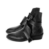 The XOXO Paper Game black leather booties by Mihaela Glavan exemplify a stylish meld of textures and meticulous craftsmanship, ideal for those who value a blend of subtlety and distinct design elements. Made from premium black leather, these booties feature multiple layers of varied textures, creating a dynamic and visually interesting appearance that catches the eye without overwhelming.